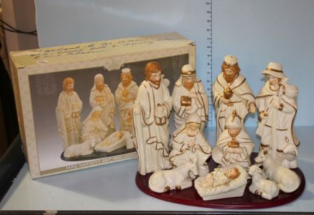 Royal Crown Nativity Set; with wooden base in original box Royal Crown Nativity Set; with wooden base in original box