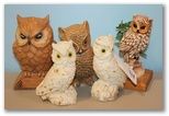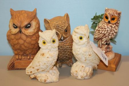 Group of Owl Figurines, various colors and sizes, largest is 6 1/2" h., 4 1/2" w. Group of Owl Figurines, various colors and sizes, largest is 6 1/2" h., 4 1/2" w.