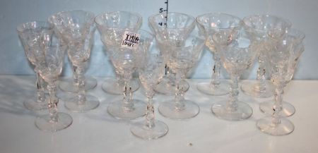 Set of Fourteen Stem Glasses; eight 4 3/4" h., six 5" h. Set of Fourteen Stem Glasses; eight 4 3/4" h., six 5" h.