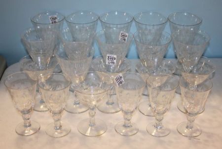 822 Set of Twenty-One Stem Glasses with Thumbprint Design