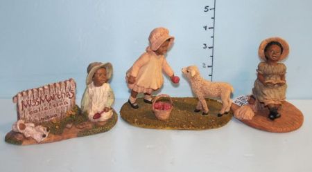 Group of Three Miss Martha's Collection Figurines; Hallie- 4 1/4" h., Jana- 3 1/4" h., 5" w., and Sara Lou- 5" h., 5 1/2" w., all individually numbered Group of Three Miss Martha's Collection Figurines; Hallie- 4 1/4" h., Jana- 3 1/4" h., 5" w., and Sara Lou- 5" h., 5 1/2" w., all individually numbered
