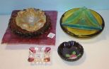 Group of Seven Colored Glass Ashtrays; various sizes Group of Seven Colored Glass Ashtrays; various sizes