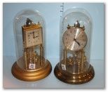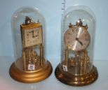 Two Brass Clocks with Glass Domes; stamped Schaty 12 1/2" h. Two Brass Clocks with Glass Domes; stamped Schaty 12 1/2" h.