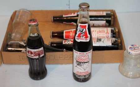 Group of Various Collectible Bottles, including; four Bear Bryant Coke Bottles, 1992 Alabama National Champion Coke Bottle, Atlanta GA Coke Bottle, two Milk Bottles, Liberty Cherry Bottle Group of Various Collectible Bottles, including; four Bear Bryant Coke Bottles, 1992 Alabama National Champion Coke Bottle, Atlanta GA Coke Bottle, two Milk Bottles, Liberty Cherry Bottle