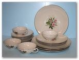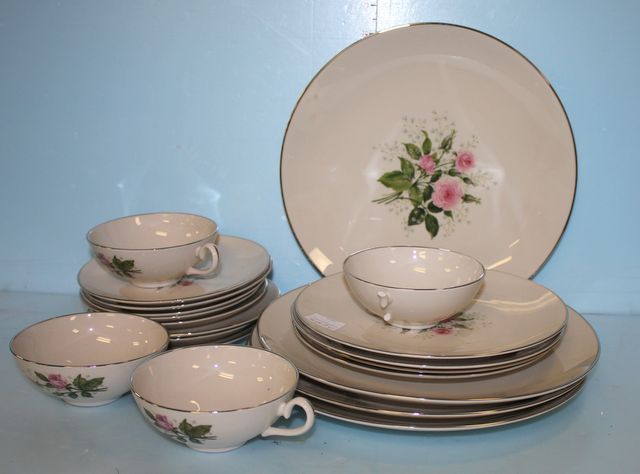 Fleetwood China; three dinner plates, four salad plates, four saucers, and three cups (one broken handle) Fleetwood China; three dinner plates, four salad plates, four saucers, and three cups (one broken handle)