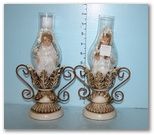 869 Pair of Resin Candlesticks with Hurricane Shades and a Doll Inside
