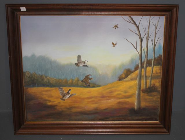 Oil on Canvas of Quails; signed lower right Phyllis Dawson Oil on Canvas of Quails; signed lower right Phyllis Dawson