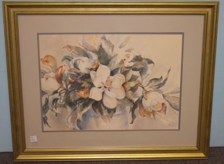 Limited Edition Print of Magnolias by Glenda Jones '84, Numbered 532/1000; 31 1/2" w., 26" h. Limited Edition Print of Magnolias by Glenda Jones '84, Numbered 532/1000; 31 1/2" w., 26" h.