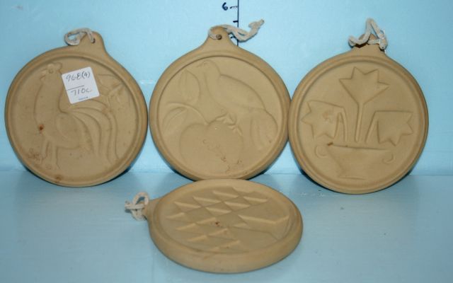Four Ceramic Cookie Presses; 4 1/2" dia. Four Ceramic Cookie Presses; 4 1/2" dia.