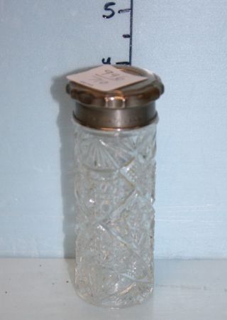 English Pressed Glass Powder Jar; 4" h., with English Registry Number on Plated Lid English Pressed Glass Powder Jar; 4" h., with English Registry Number on Plated Lid