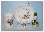 997 Four Piece Milk Glass Handpainted with Violets , Toothpicks, and Dresser Pieces