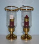 Pair of Brass Candleholders with Hurricane Shades Pair of Brass Candleholders with Hurricane Shades
