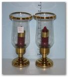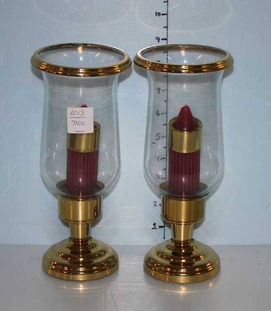 1013 Pair of Brass Candleholders with Hurricane Shades