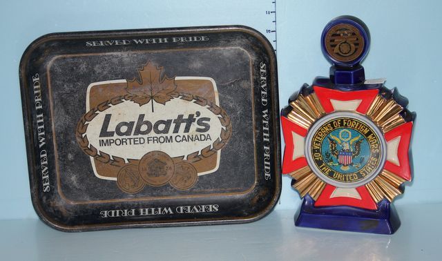 1015 1973 VFW Decanter and a Labatts Metal Beer Tray