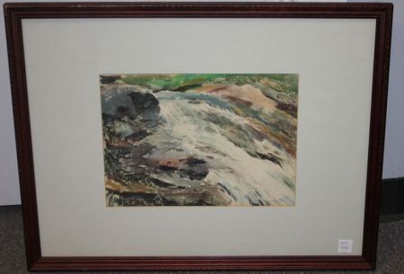 Watercolor of Rushing River; 25 1/2" w., 19 1/2" h. Watercolor of Rushing River; 25 1/2" w., 19 1/2" h.