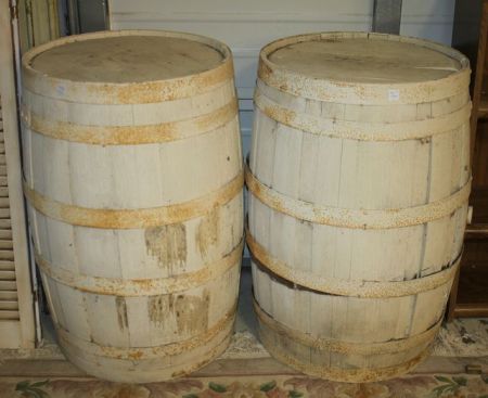 Two Painted Whiskey Barrels Two Painted Whiskey Barrels