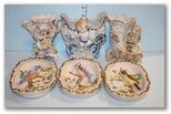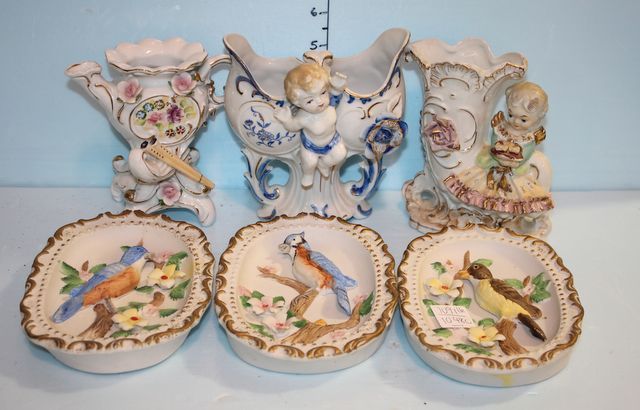 Group of Decorative Items, including; three oval bird plaques, figural single vase, tea pot Group of Decorative Items, including; three oval bird plaques, figural single vase, tea pot
