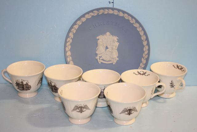 1095 1997 Wedgwood Christmas Plate along with Seven Philadelphia of Truria Wedgwood Cups