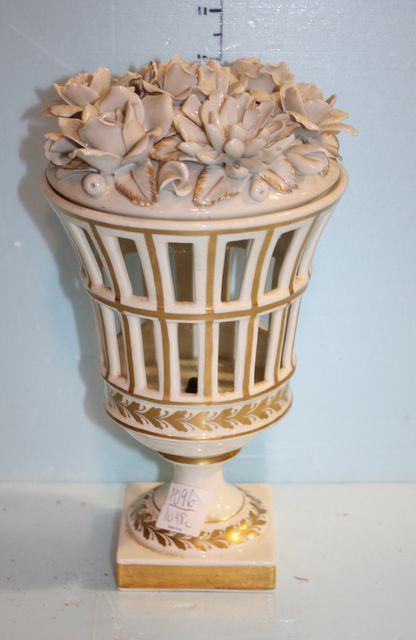 1096 Gold and White Ardalt Flores Imperio Spain Covered Urn