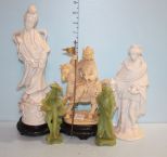 Group of Figurines, including; two green sculptures A. Santini oriental figurines, Santini white oriental figurine, white Geisha girl, oriental man on horse figurine Group of Figurines, including; two green sculptures A. Santini oriental figurines, Santini white oriental figurine, white Geisha girl, oriental man on horse figurine