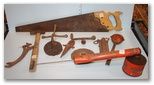 Five Miscellaneous Cast Iron Pieces, a Bug Sprayer, a Hand Saw, and a Hammer Five Miscellaneous Cast Iron Pieces, a Bug Sprayer, a Hand Saw, and a Hammer