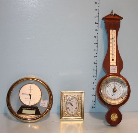 1145 Small Elgin Table Top Clock, Citizen Sound Clock, and a Swift and Anderson Barometer