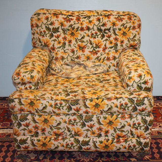 Flower Upholstered Arm Chair; 28" h. Flower Upholstered Arm Chair; 28" h.