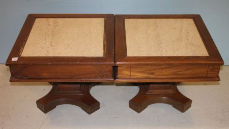 1164 Pair of Modern Square End Tables with Slate Inserts