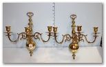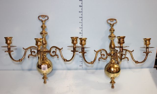 Pair of Brass Candle Holder Wall Sconces; 12 1/2" h., 14" w. Pair of Brass Candle Holder Wall Sconces; 12 1/2" h., 14" w.