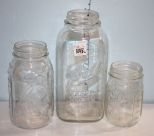 Three Ball Mason Jars; 9 1/2" h., 7" h., 5" h. Three Ball Mason Jars; 9 1/2" h., 7" h., 5" h.