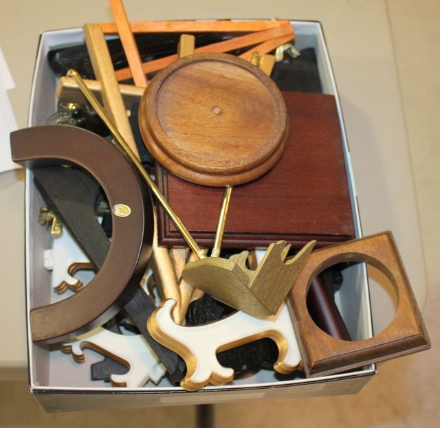 Eighteen Various Plate Holders along with Three Wooden Stands and a Cups and Saucer Holder Eighteen Various Plate Holders along with Three Wooden Stands and a Cups and Saucer Holder