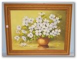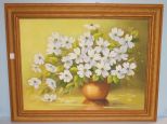 1306 Oil on Canvas of Dogwood Flowers in Vase, signed Estella Walker