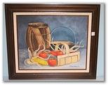 Oil on Board of Basket of Vegetables, artist signed Estella Walker, from Fairhope, AL, dated 1976; 26" w., 22" h. Oil on Board of Basket of Vegetables, artist signed Estella Walker, from Fairhope, AL, dated 1976; 26" w., 22" h.