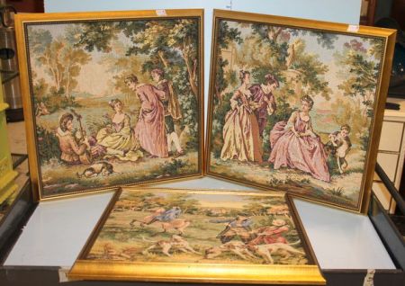 Three Framed Tapestry Pictures; 19 1/2" w., 20" h. Three Framed Tapestry Pictures; 19 1/2" w., 20" h.