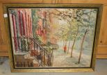 Print on Board of Street Sidewalk Scene, signed Peter Hayward; 31" w., 25" h. Print on Board of Street Sidewalk Scene, signed Peter Hayward; 31" w., 25" h.