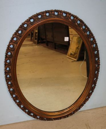 Oval Mirror in Open Carved Frame; 27 1/2" w., 33" h. Oval Mirror in Open Carved Frame; 27 1/2" w., 33" h.