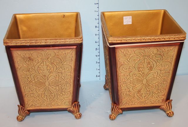 Two Square Footed Resin Trash Cans; 11" h., 8" square Two Square Footed Resin Trash Cans; 11" h., 8" square