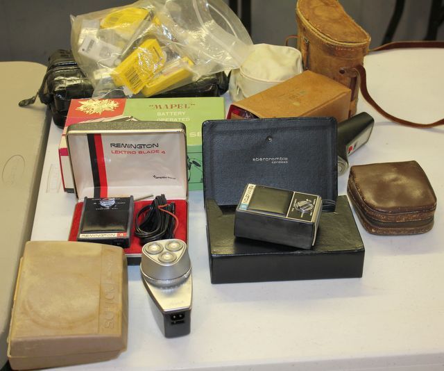 Group of Various Razors and Vintage Blades, including; bag of metal razors and blades, shoe brush set, Rotomatic razor, Schick electric razor, Remington razor, Norelco razor, Schick razor, Sunbeam razor, Remington razor, shoe shine kit Group of Various Razors and Vintage Blades, including; bag of metal razors and blades, shoe brush set, Rotomatic razor, Schick electric razor, Remington razor, Norelco razor, Schick razor, Sunbeam razor, Remington razor, shoe shine kit