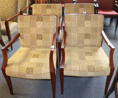 418 David Edward Four Modern Style Arm Chairs with Wood Backs and Upholstered Fronts