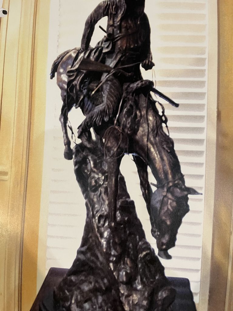 39.5" x 28" https://www.liveauctioneers.com/item/94801891_a-large-remington-bronze-sculpture many of these online. Price dropped after the Internet. There are no distinguishing marks on this one different than the ones selling. 3000-4500 39.5" x 28" https://www.liveauctioneers.com/item/94801891_a-large-remington-bronze-sculpture many of these online. Price dropped after the Internet. There are no distinguishing marks on this one different than the ones selling. 3000-4500