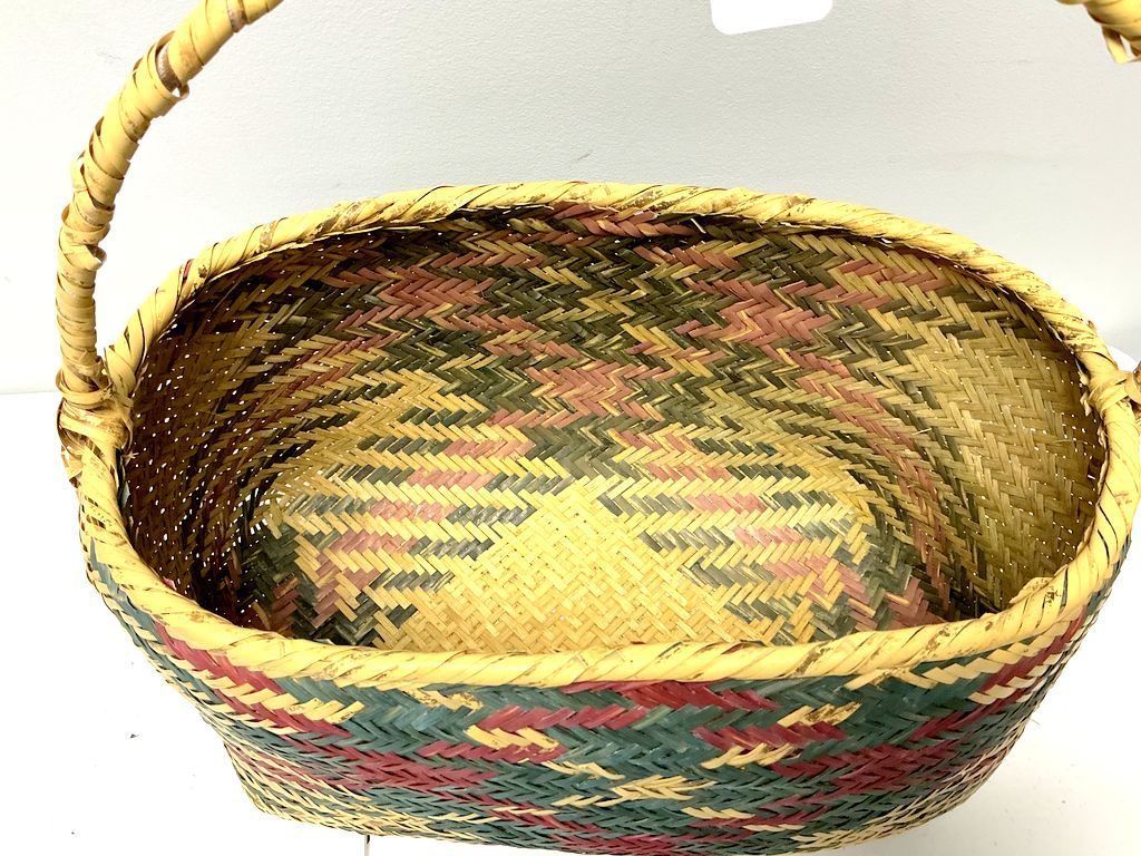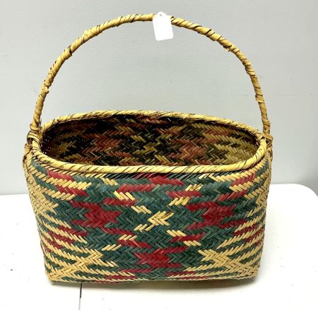 19"h., 17"w. Choctaw Hand Woven Cane Basket, single handled, rivercane, good condition. 19"h., 17"w. Choctaw Hand Woven Cane Basket, single handled, rivercane, good condition.