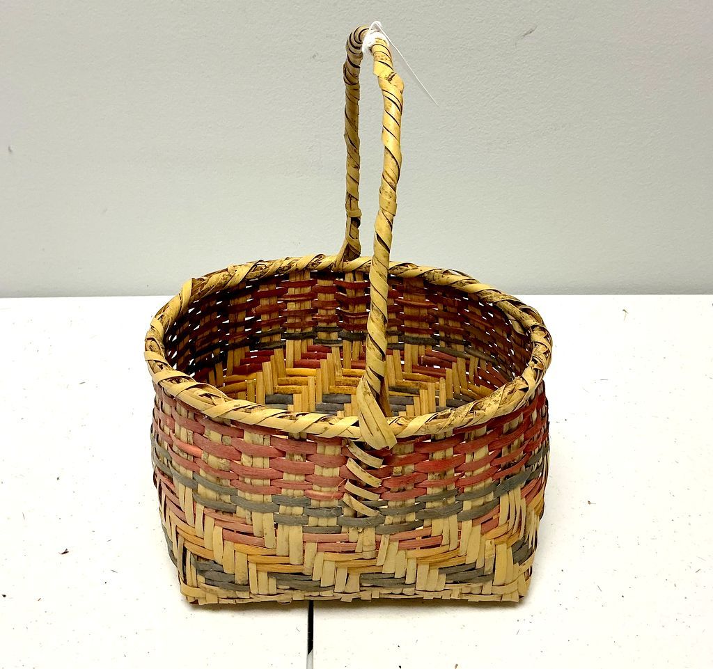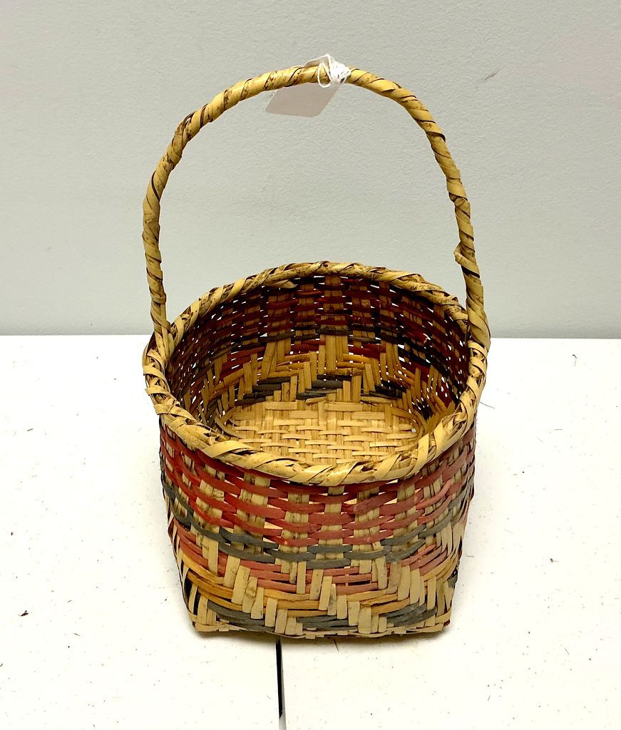10"h., 8"dia. Choctaw Hand Woven Cane Egg Basket, single handled, good condition. 10"h., 8"dia. Choctaw Hand Woven Cane Egg Basket, single handled, good condition.