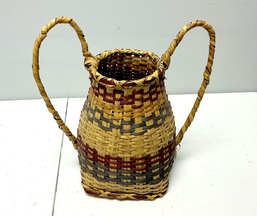 13"h., 12"dia Choctaw Hand Woven Basket Double-handle, rivercane, good condition 13"h., 12"dia Choctaw Hand Woven Basket Double-handle, rivercane, good condition