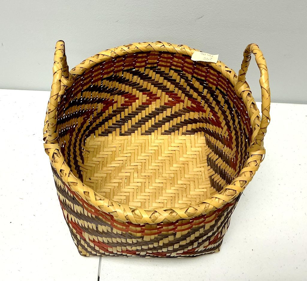 13"h., 11"dia Choctaw Hand Woven Basket Double-handle, rivercane, good condition 13"h., 11"dia Choctaw Hand Woven Basket Double-handle, rivercane, good condition