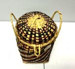 362 11"h., 7"w. Choctaw Hand Woven Basket Lidded Double-handle