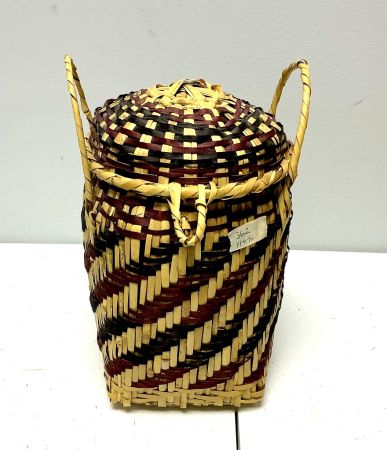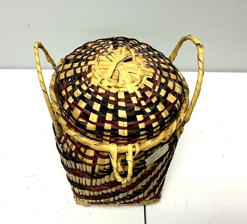 11"h., 7"w. Choctaw Hand Woven Basket Lidded Double-handle, rivercane, good condition 11"h., 7"w. Choctaw Hand Woven Basket Lidded Double-handle, rivercane, good condition