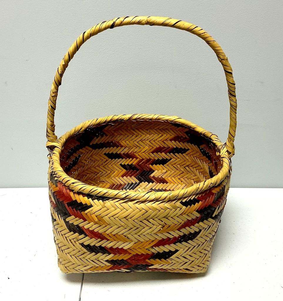 19"h., 14"w. Choctaw Hand Woven Basket Single-handle, loose handle, rivercane, good condition 19"h., 14"w. Choctaw Hand Woven Basket Single-handle, loose handle, rivercane, good condition