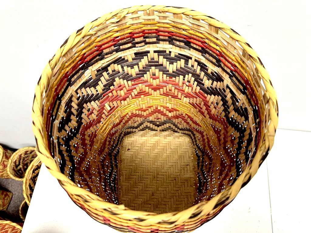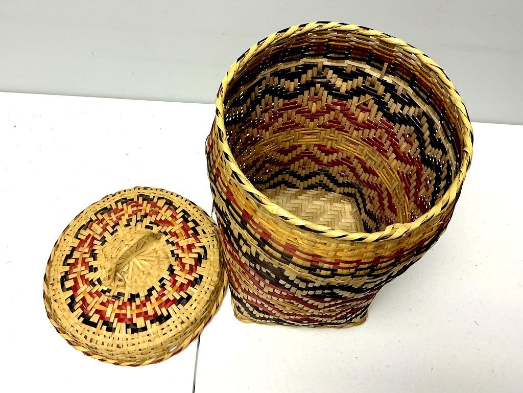 18"h., 10"w. Choctaw Hand Woven Basket Lidded Single-handle, rivercane, good condition 18"h., 10"w. Choctaw Hand Woven Basket Lidded Single-handle, rivercane, good condition