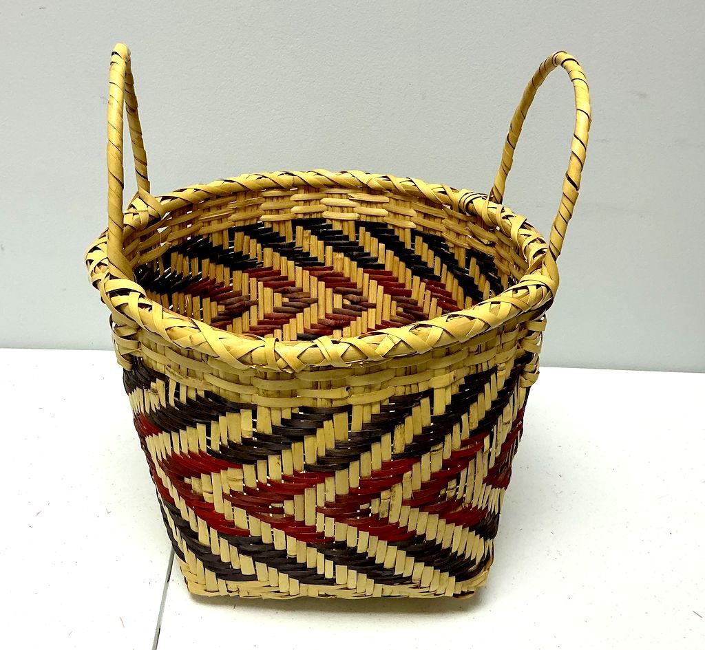 15"h., 13"w Choctaw Hand Woven Basket Double-handle, rivercane, good condition 15"h., 13"w Choctaw Hand Woven Basket Double-handle, rivercane, good condition