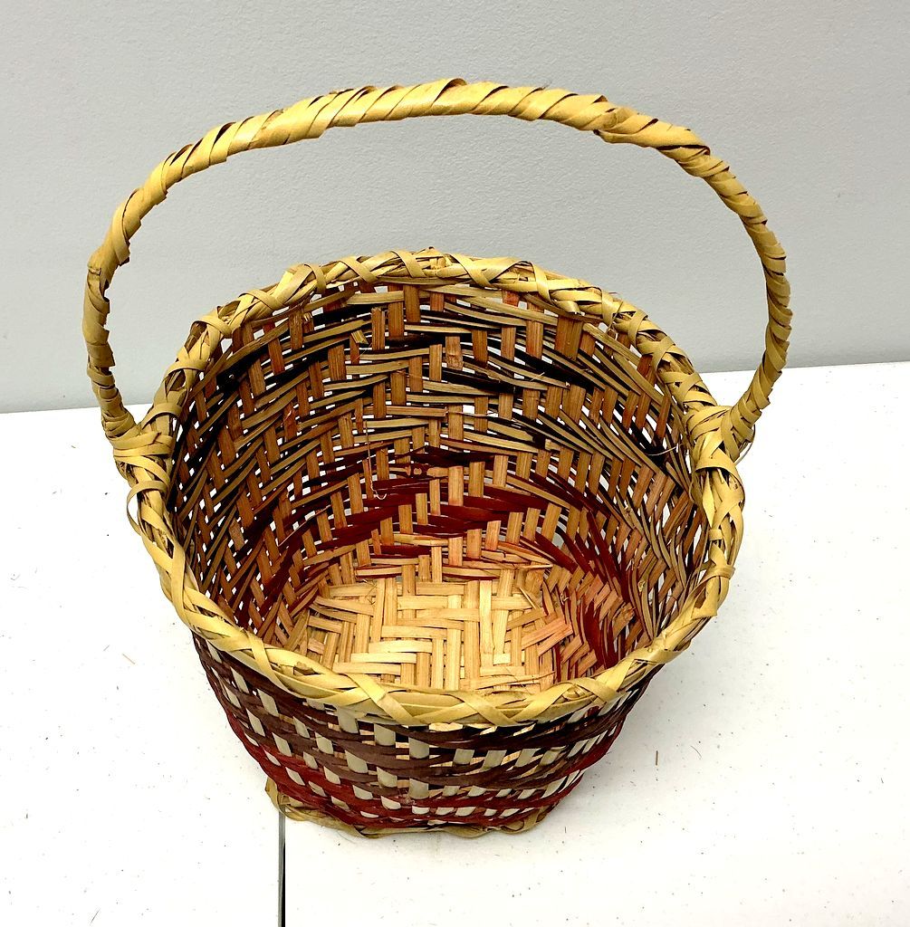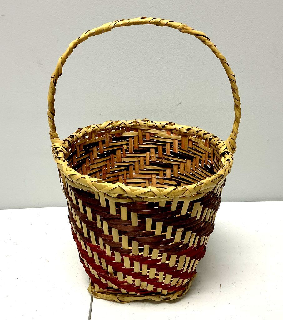 14"h., 9"w Choctaw Hand Woven Cane Gathering Basket, single handled, good condition. 14"h., 9"w Choctaw Hand Woven Cane Gathering Basket, single handled, good condition.